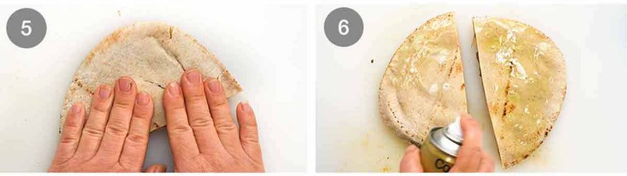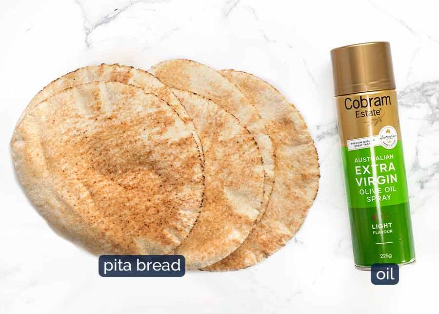 Olive oil spray works best for cooking, I found. Using oil in the pan makes the pita pockets a little too greasy. If you don’t have spray, just brush the surface with olive oil.