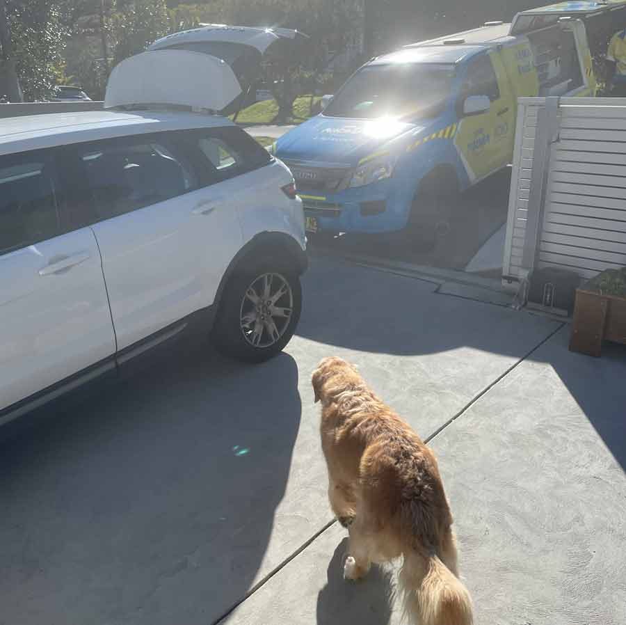 Weekend car problems. Dozer was keen to help. (Well that’s a big fat lie! We all know he was just snuffling around for treats from the road side assistance man.)