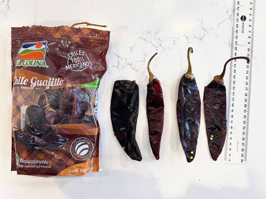 - 25 g (0.9 oz) guajillo chillies, dried (~4 pieces, heaped 3/4 cup once chopped) (Note 1)