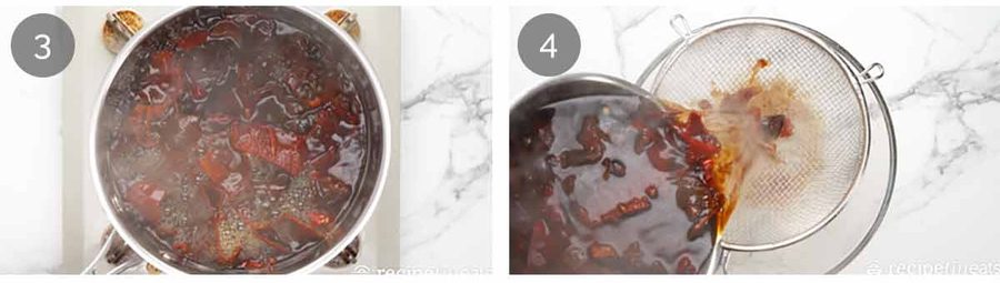 Dried chillies are tough so we need to soak to soften before blitzing into an Adobo paste.