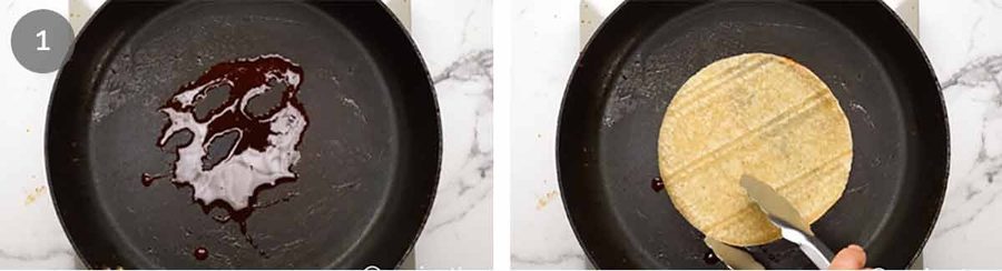 Crisp it! Fold over like a quesadilla then pan-fry on medium-high heat (or medium, if your stove is strong) until crisp and the cheese is melted – about 90 seconds on each side. You won’t need to add any more oil, the oil on the surface of the tortilla should be enough.
