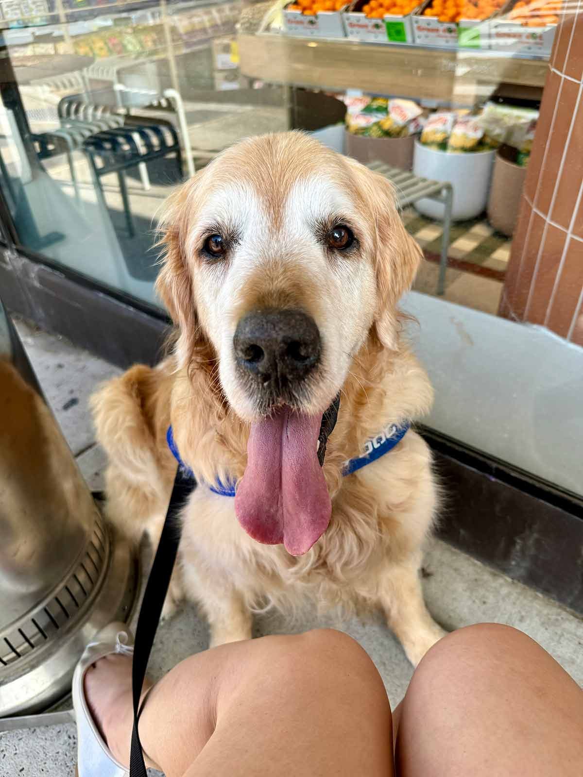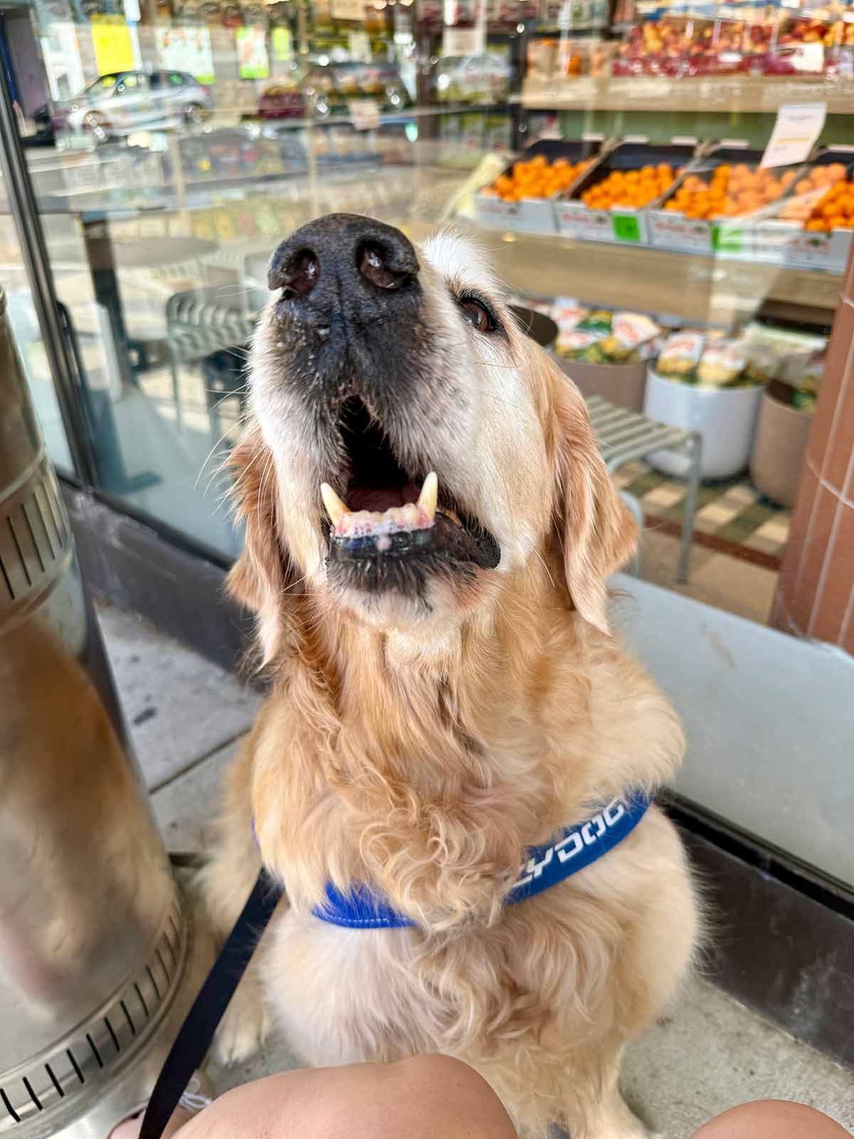 Then after a hard morning of work, I dropped by Fabricca bread shop in Rozelle (Sydney) on the way home to treat myself to a really good deli sandwich only to have Dozer “serenading” me and fellow diners as we tried to enjoy our lunch. How dare I eat in front of him without offering him a bite. How dare I! 😂