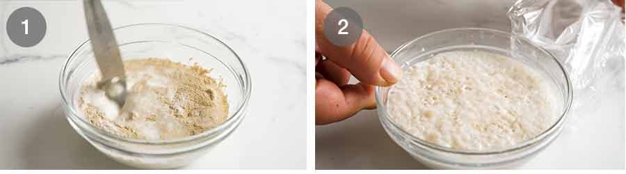 - Bloom yeast (Note 1): In a small bowl, mix 1 tsp sugar, yeast and milk together. Cover with cling wrap and set aside in a warm place for 10 minutes until foamy.