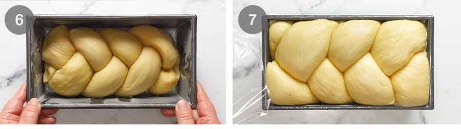 - Loaf pan: Spray a 21.5 x11cm (8.5 x 4.3") loaf pan well coated with oil spray, then place the dough in. Lightly spray cling wrap with oil, then cover the dough.