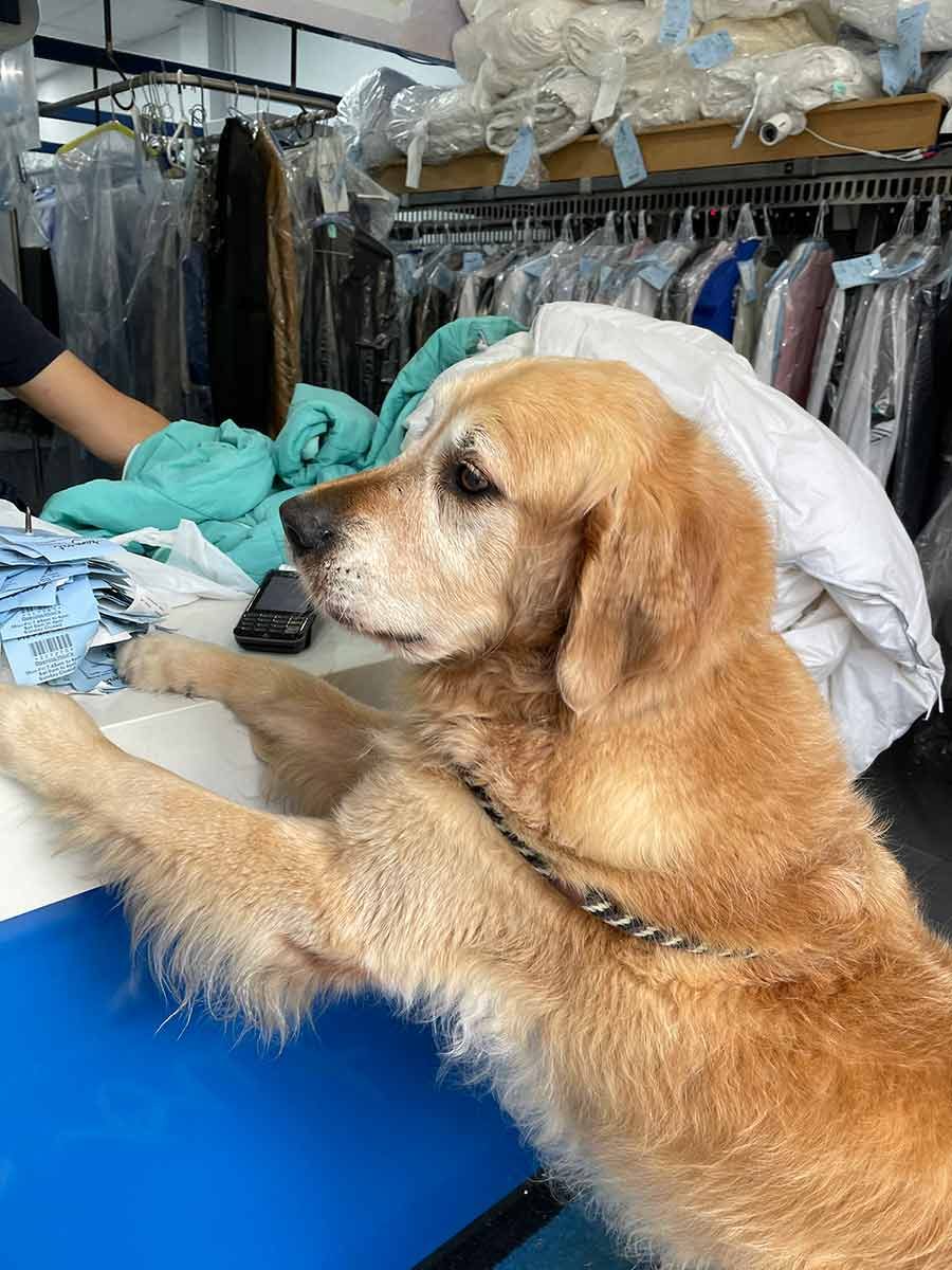 He’s so stinky, I should put him in for dry cleaning too!