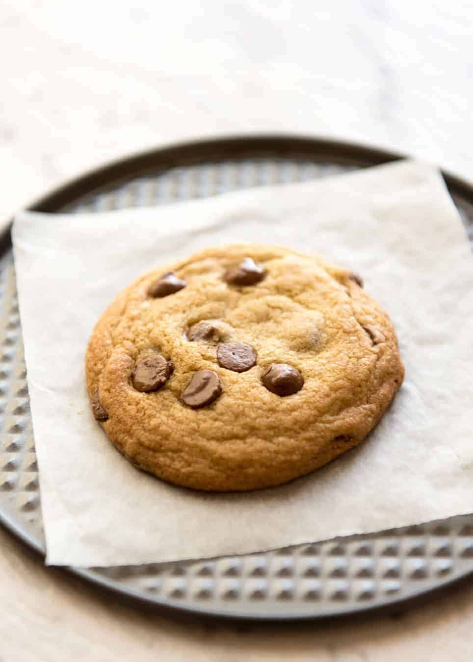 Your recipes are always the best and simplest, i stopped comparing with other websites. It was 26 degrees in the house when we made them, no chilling, and they came out perfectly, crispy on the edges and chewy inside. It yielded 16 large cookies, the kids were blown away. Thank you.