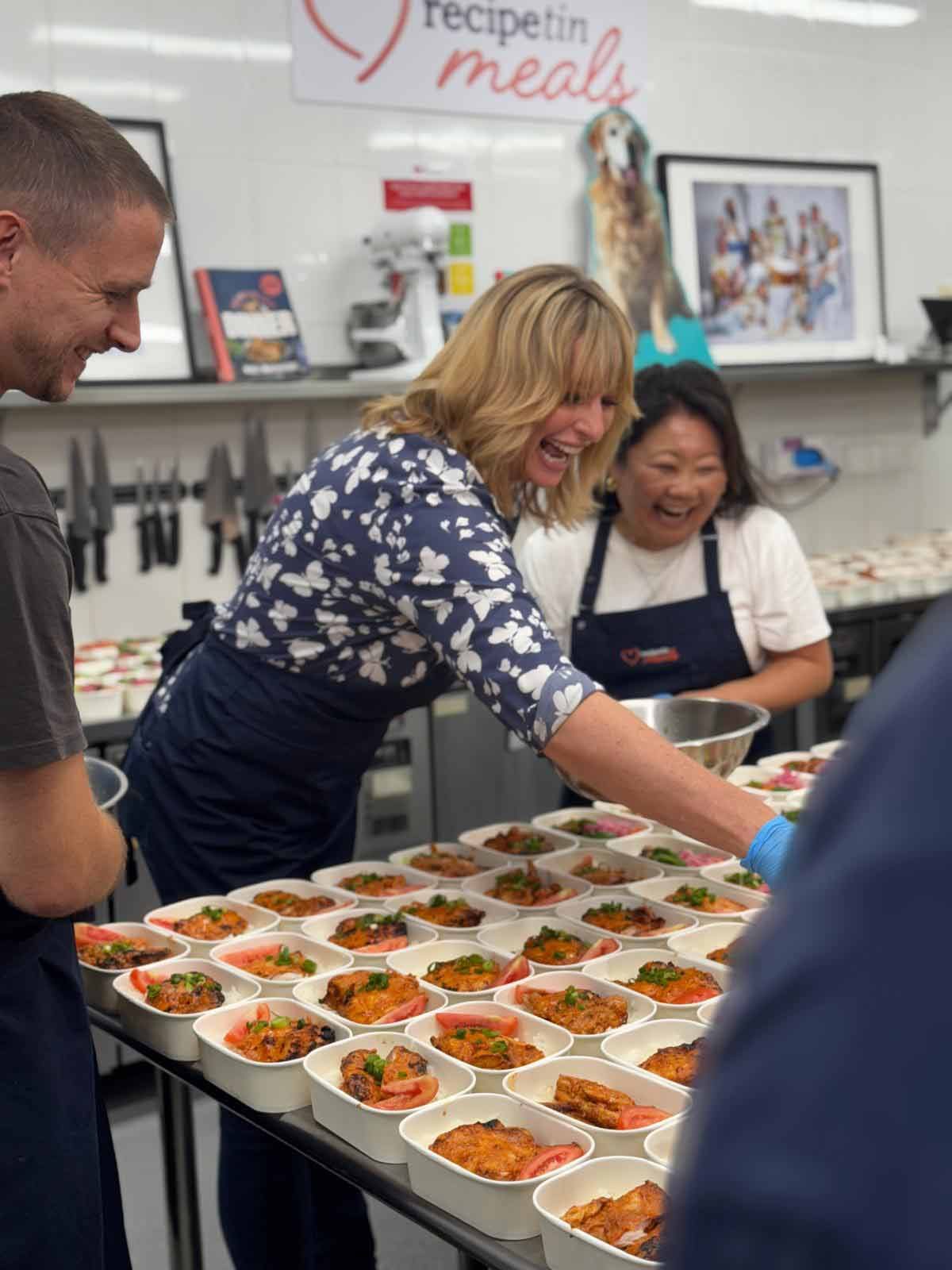 We then moved onto RecipeTin Meals (“RTM”, our foodbank) where we showed Joh our kitchen and she got to see first hand the team making and packing hundreds of meals!
