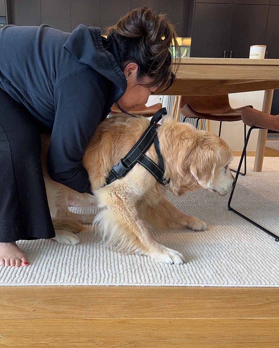 Re-hab time! 12 days of being under the weather has really taken a toll on his mobility. As Neil, the Magic Dog Doctor, always says – if you don’t use it, you lose it – and Mr Dozer has lost it. 😢 He’s too weak and creaky to stand up by himself, so I find myself doing this 30 times a day: