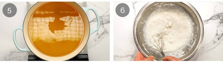Oil heating – Start heating the oil. Heat it to 160°C/320°F (I use a Thermapen to check the temperature). You will need 4cm / 1.6″ depth to keep the chicken suspended as it cooks (you will cry if it gets stuck on the base and rips the shell off!). But the oil stays clean so you can used it for regular cooking after use.
