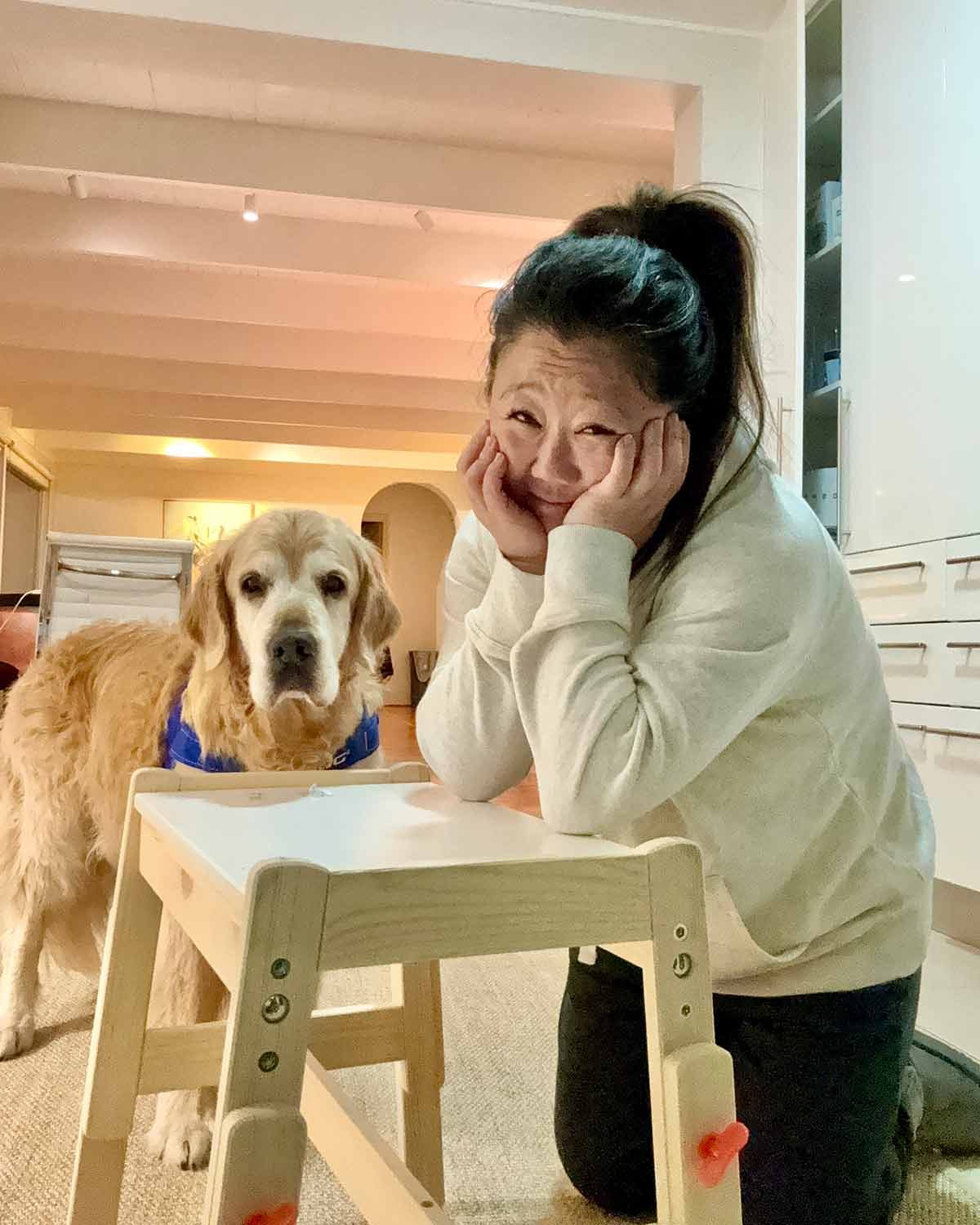 And one from last week that I’m still traumatised about – Ikea fail and Dozer looking extremely concerned (rightly so!). Simple little kids’ bench I deemed as perfect to be Dozer’s new eating table* I managed to completely stuff up. I was wondering why I was left with 3 screws leftover at the end……???