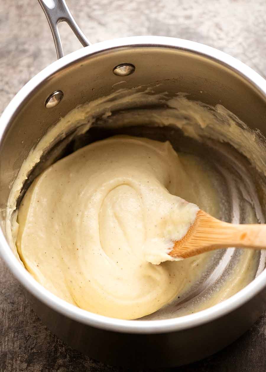I used cheddar because I didn’t have gruyere and made half the recipe since it was just for me. Maybe i got the portions wrong or didn’t get the bechamel thick enough. I also didn’t realize it had to bake at first so I had to go back and look. It would be nicer if that part was in bold or mentioned earlier.