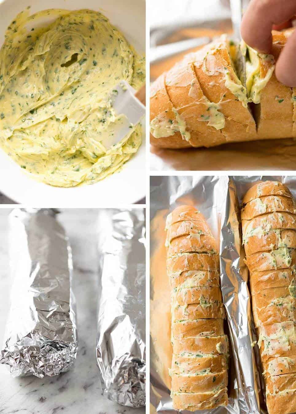 In my world, classic Garlic Bread should always be made with stock standard supermarket or basic bakery French stick / baguette. The crust isn’t that thick, and it’s usually pretty soft rather than crispy. Once slathered with butter and baked in foil, I find it yields the perfect ratio of crust crunch to soft, warm, garlic butter soaked bread.