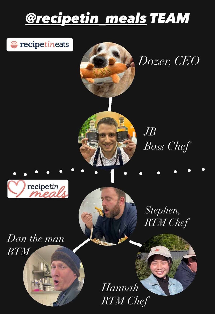 I shared a fun little RecipeTin Meals organisation diagram on Instagram over the weekend. Everybody reports to CEO Dozer! 😂