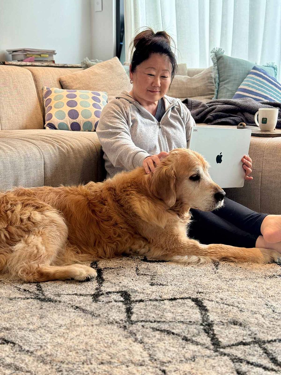 No dogs allowed on the couch! Which means – I spend a lot of time on the floor with him. 😂