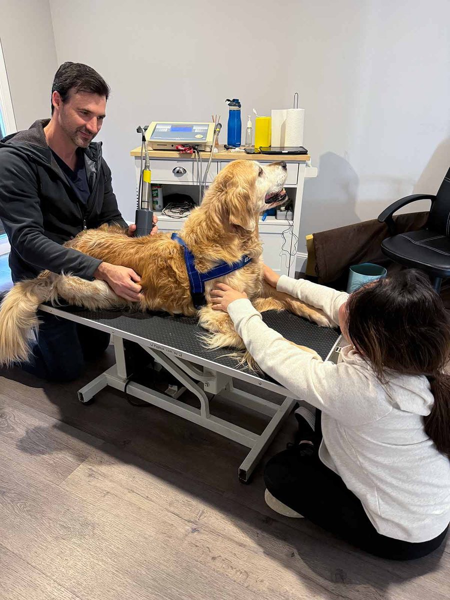 Here he is at the magic dog doctor, Neil Barnsley of Holistic Animal Therapies. It takes over an hour to drive there but I’ve been taking Dozer for the last 8 years – because he’s that good, and I have so much faith and trust in him. He treats Dozer for muscle, bone and joint related issues, of which there have been many over the years because he was such an active dog in his youth!