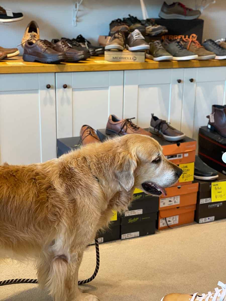 When Dozer came shoe shopping. I live in a VERY dog friendly area!!!