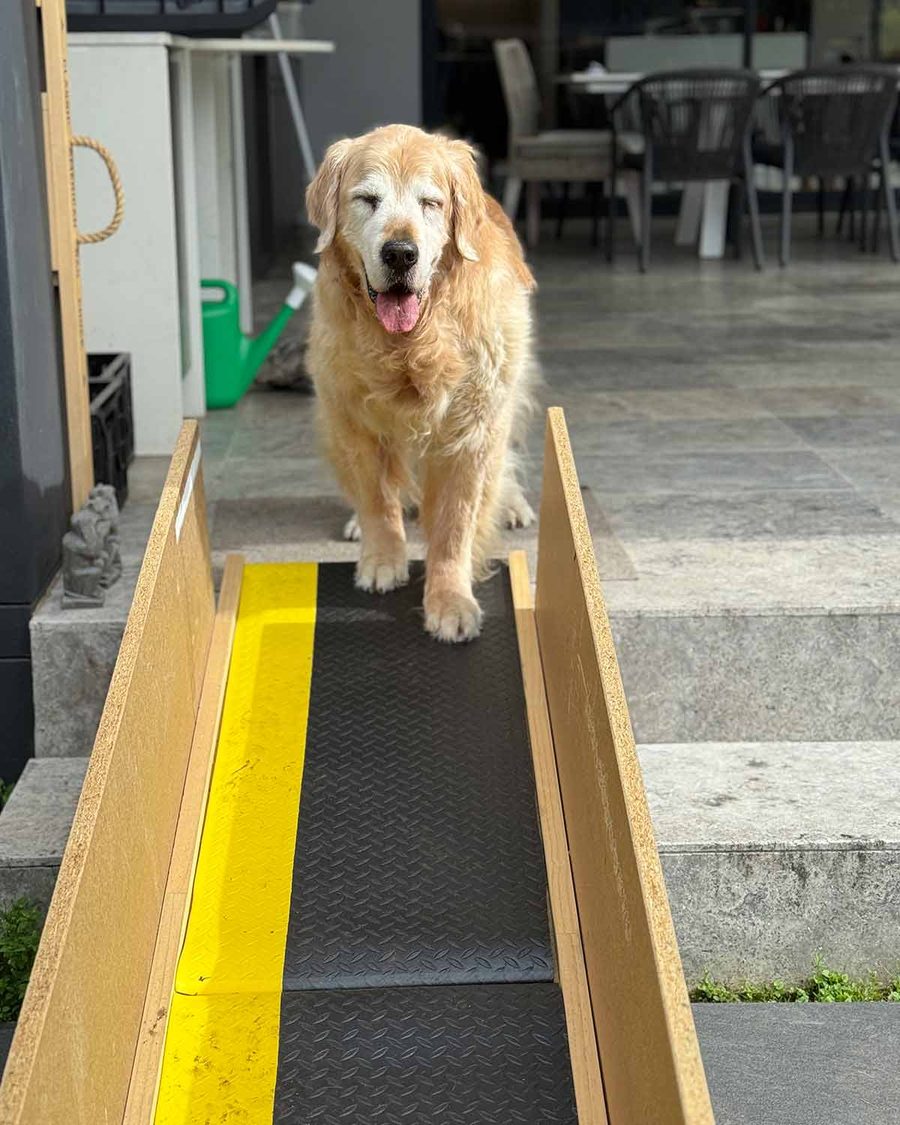 My builders made a ramp for Dozer, with safety sides and all. 🥰