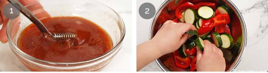 - Sauce – Mix the sauce ingredients in a small jug or bowl.