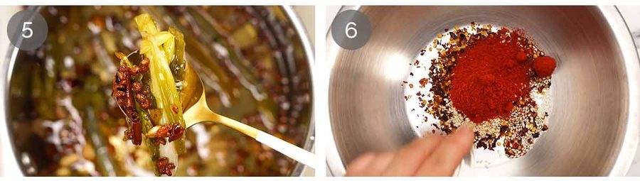 - Soak Dried Spices with the water 30 minutes. Gently simmer with Oil Infusion ingredients 25 minutes. Strain into bowl over Oil Sizzle ingredients. Cool 30 minutes, mix in Seasoning & Crispy Bits. Fridge 24 hours. Mix very well before use!