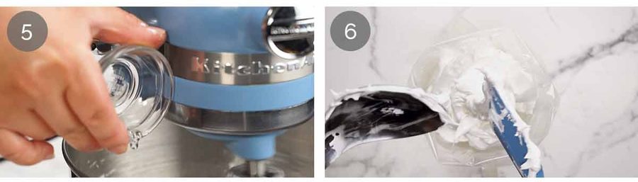 - Beat 5 minutes – Continue to beat for 5 minutes on high until it's fluffy, glossy, and there are no sugar grains remaining when you rub a bit between your fingers. Add vinegar and cornflour then beat for a further 30 seconds.
