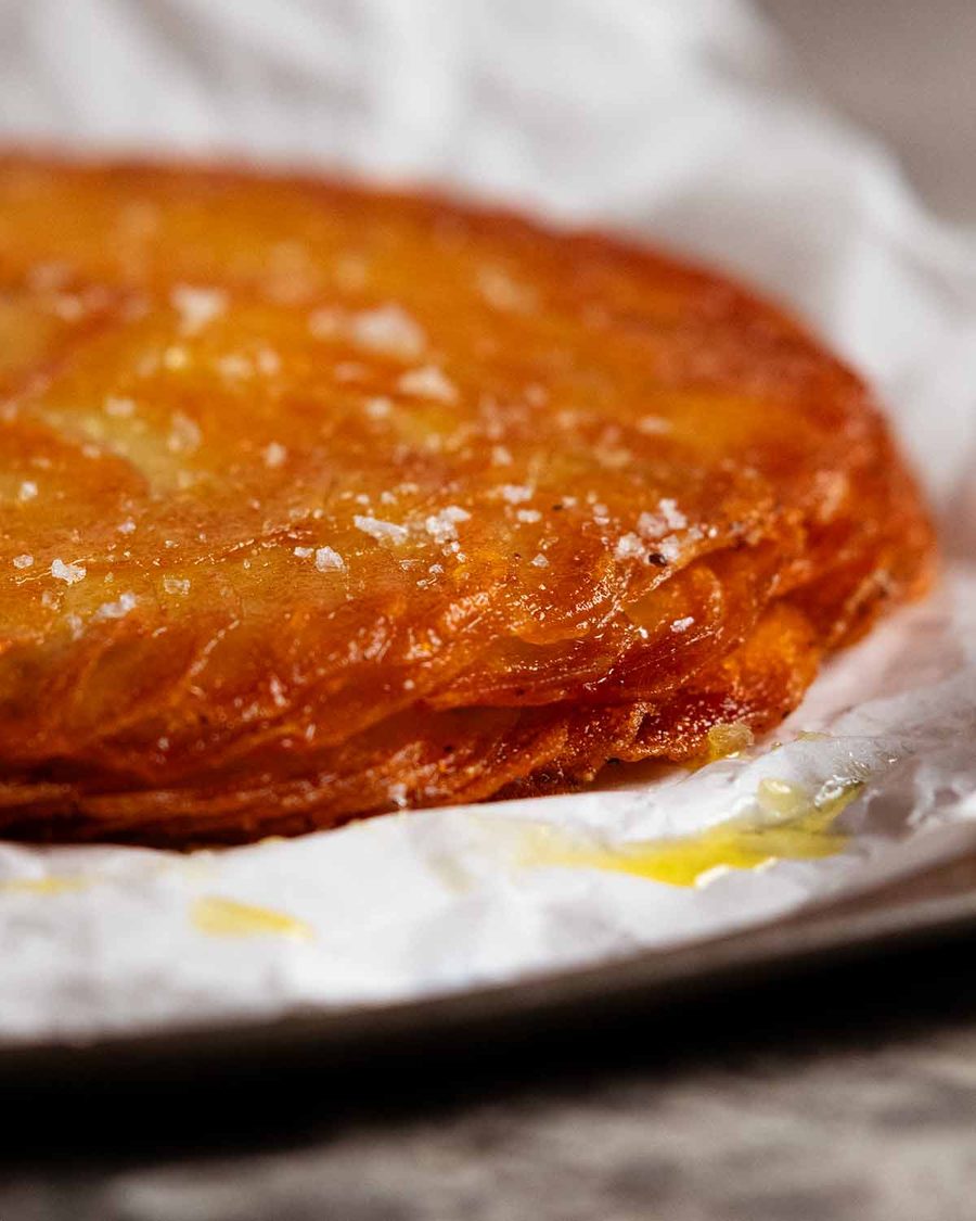 Introducing Pommes Anna – also known as Potatoes Anna – the ultimate French potato cake. Thinly sliced potato, lots of butter, crispy edges, soft centre, and a big “wow” moment when you flip it out. We’ve had quite a few of those in the process of developing it!