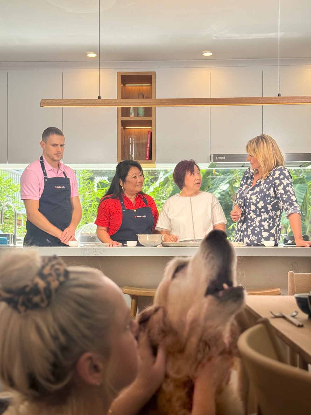As his personal assistant, I was caught on camera once or twice too, along with Mama RecipeTin and our very own JB. Hard to say who stole the show – Mama RecipeTin by declaring herself the winner in the gyoza wrapping competition and that “everybody else comes last” (I mean, who says that to a famous person like Johanna Griggs??! 🤦🏻♀️)……..