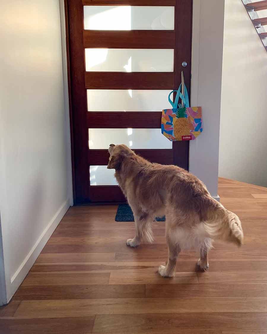 Delivery people are often apprehensive when they hear Dozer’s commanding (very loud!) bark when they knock on the door. Then that instantly changes to relief when I open the door and they see his dopey face and wagging tail!