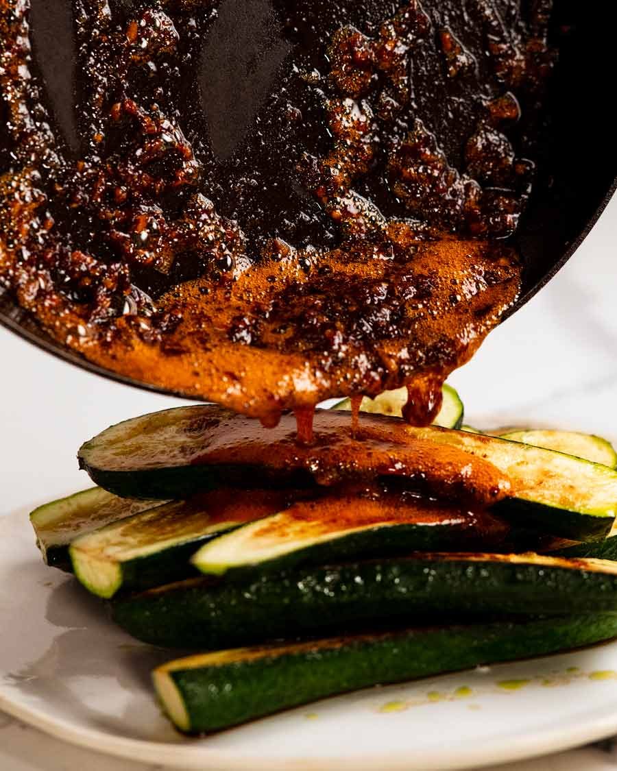 This is so delicious. Recipes for fried shallots (onions can be fried instead of shallots) are all over the internet and super easy. It just takes patience. The zucchini was slightly tender and nicely browned. The sauce was over the top. Went well with the Asian Chilli Chicken recipe. Noticed not a lot of views on the chicken recipe. Might be because “chili” is spelled wrong. Will make over and over, great way to get vegetables on your plate.