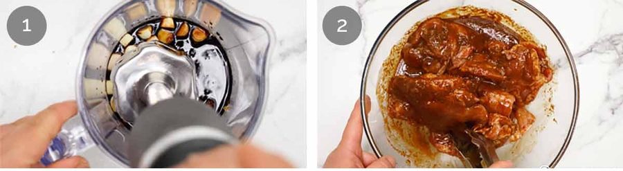 - Blitz – Place Marinade ingredients EXCEPT oil in a jug just large enough to fit the head of a stick blender. Blitz until lemongrass and garlic is fully pureed. (No stick blender? Finely grate lemongrass and garlic, then mix)