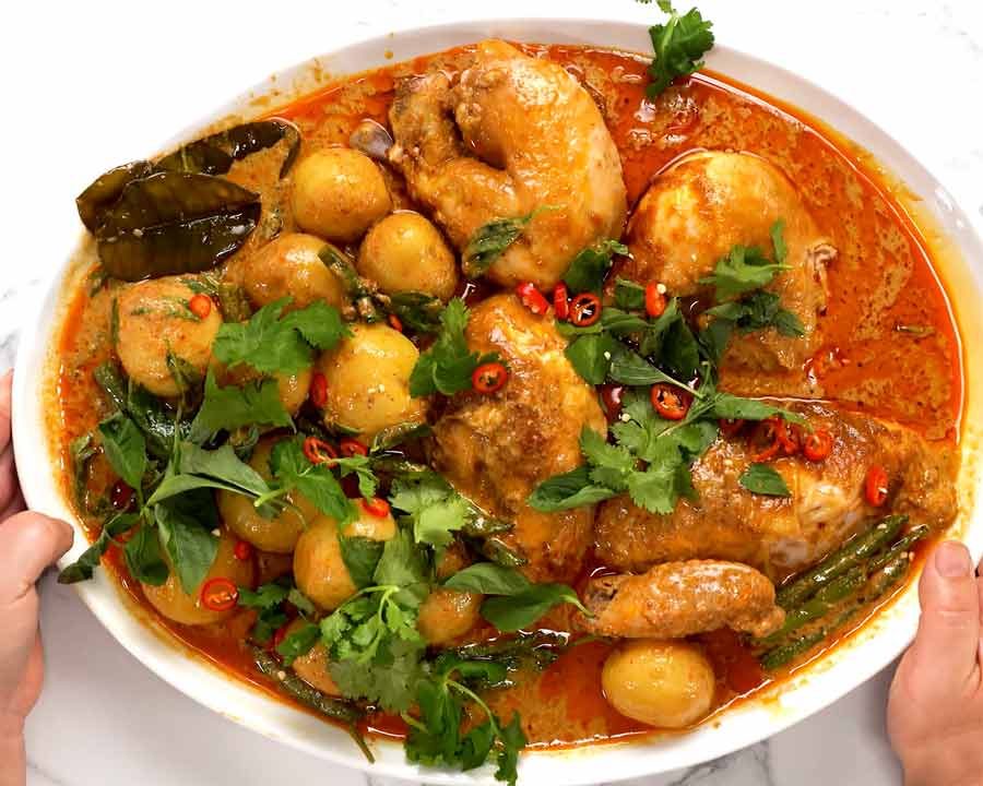 Consider this to be the roast chicken version of Lamb Shanks Massaman Curry, and beloved fan-favourite where you just put everything in a pan, pop it in the oven, then out comes fall-apart bronzed lamb shanks smothered in a rich massaman curry sauce.