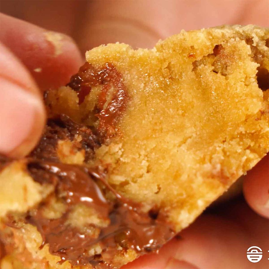 Superior texture – thick crisp, golden crust with soft, chewy insides. Their generous size allows for a long enough bake to create an excellent crispy surface while keeping the centre irresistibly gooey which is ultra soft and moist but not blatantly raw cookie dough (not a fan of raw flour taste);