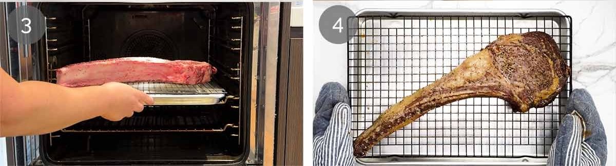 Sadly 45mins in oven and 2mins each side were too much for our tomahawk. I thought it was thick and it was a 1KG piece. Would recommend 100 degrees for 20mins next time.