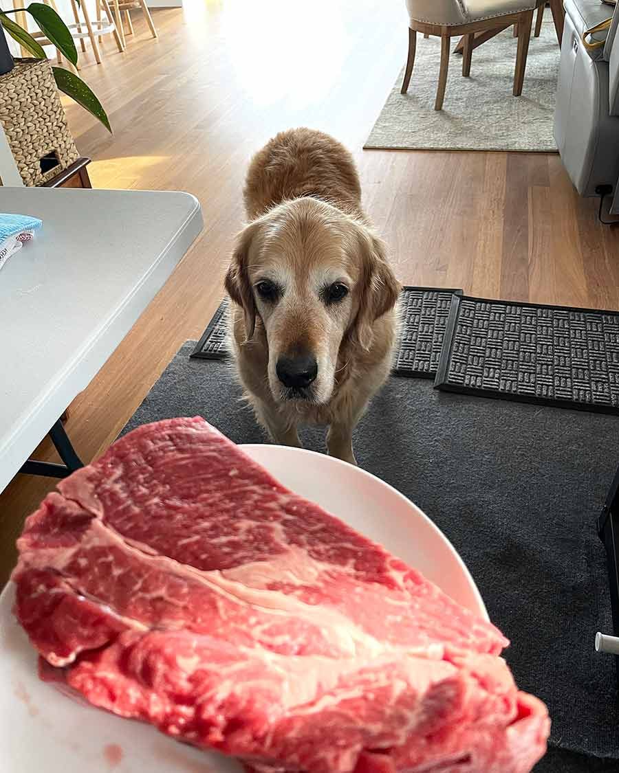 Still waiting for the one in a million moment that a slab of beef hits the floor.