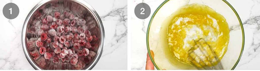 - Toss the raspberries with the flour. If using frozen, put the bowl in the freezer (so they don't thaw).