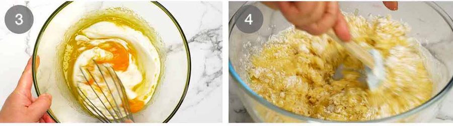 Remaining wet ingredients – Whisk in the remaining wet ingredients (yogurt, egg, vanilla).
