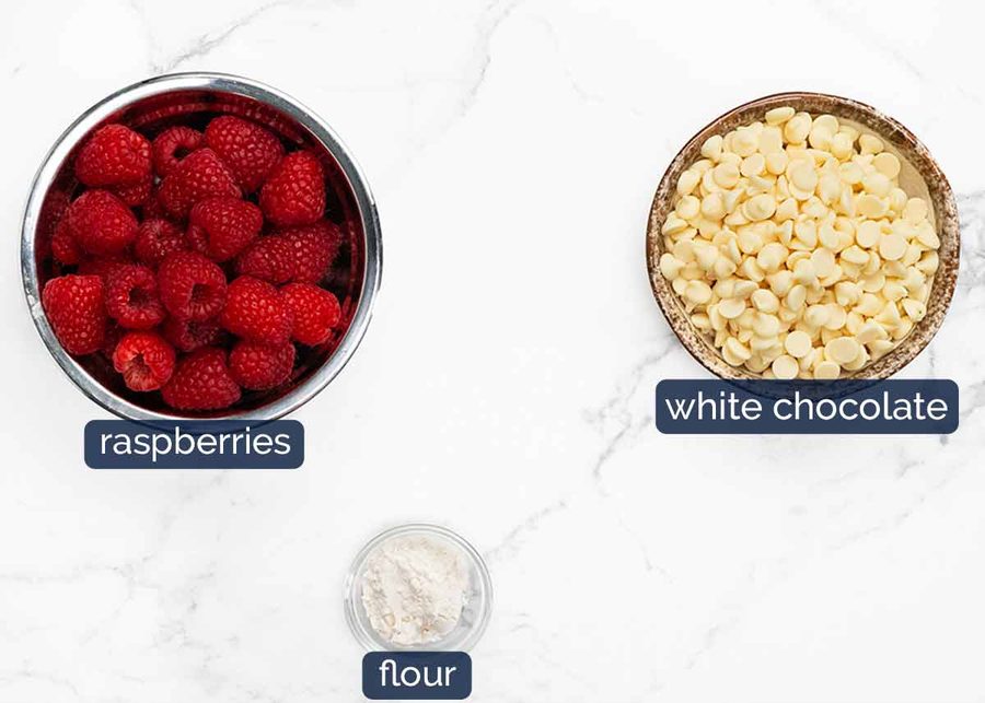 It’s a classic combination really, white chocolate and raspberry. It astounds me I don’t have more examples on my website!